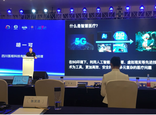 活动现场,四川医枢科技股份有限公司总经理胡一可受邀出席“5G+大健康”分论坛并做了发言。他表示,智慧医疗是在5G环境下,以人工智能、大数据、虚拟现实等多种新技术为工具,从而更加高效、安全的解决多元复杂医疗问题的先进医疗技术。在5G的优势特性下,结合人工智能及大数据技术,将催生出真正的智慧医疗——促进医疗的标准化,实现高效、安全、个体、精准的治疗管理。